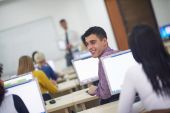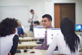Grupa studentów w pracowni komputerowej laboratorium