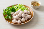 Zdjęcie "Siomay Bandung (Shumay) lub pierogi na parze z gotowanym tofu. Indonezyjski tradycyjny street food z sosem orzechowym." może być wykorzystywane do celów osobistych i komercyjnych zgodnie z warunkami zakupionej licencji Royalty-free. Obraz jest dostępny do pobrania w jakości wysokiej rozdzielczości do 5760x3840.