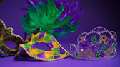 Mardi Gras lub maski karnawałowe na fioletowym tle