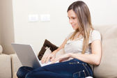 Zdjęcie "Kobieta z laptopem w domu" może być wykorzystywane do celów osobistych i komercyjnych zgodnie z warunkami zakupionej licencji Royalty-free. Obraz jest dostępny do pobrania w jakości wysokiej rozdzielczości do 5760x3840.