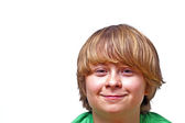 szczęśliwy chłopiec słuchania muzyki przez słuchawki