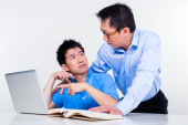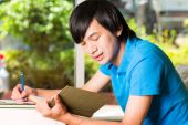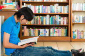 Azjatyckich studentów czytania książki lub podręcznika nauki