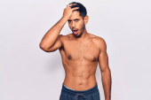 Młody Afroamerykanin z farbowanymi włosami pewnie pozuje w jasnym studio.
