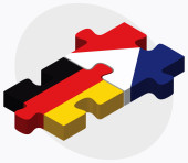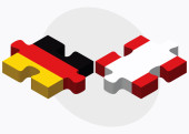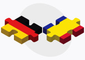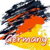 Flaga Niemiec z geometrycznych kształtów i tekstu Niemcy
