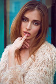 fashion model woman with cotton plant balls in her hands