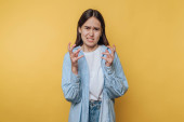 Zdjęcie "Młoda kobieta ze zmartwionym wyrazem twarzy, ściskająca dłonie." może być wykorzystywane do celów osobistych i komercyjnych zgodnie z warunkami zakupionej licencji Royalty-free. Obraz jest dostępny do pobrania w jakości wysokiej rozdzielczości do 5760x3840.