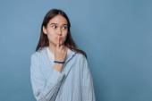 Młoda kobieta ze zmartwionym wyrazem twarzy, ściskająca dłonie.