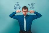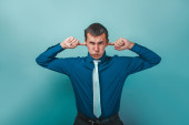 mężczyzna biznesmen człowiek zamknięty jego uszy z jego rąk palce web