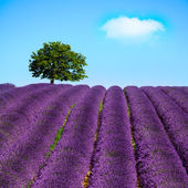 Lawenda kwiaty kwitnące pole i zachmurzone niebo. Valensole, udowodnić
