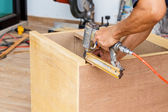 charpentier raboter du bois pour la construction d'une maison
