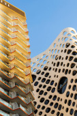 Zdjęcie "Fasada prefabrykowanego betonu modułowego na biurowcu funkcjonalistycznym CBR Building, Watermael-Boitsfort, Bussels, Belgia" może być wykorzystywane do celów osobistych i komercyjnych zgodnie z warunkami zakupionej licencji Royalty-free. Obraz jest dostępny do pobrania w jakości wysokiej rozdzielczości do 5760x3840.