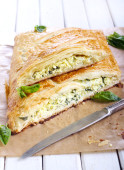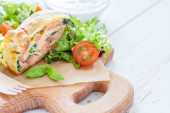 Zdjęcie "Kołowego strudla z łososiem i szpinakiem" może być wykorzystywane do celów osobistych i komercyjnych zgodnie z warunkami zakupionej licencji Royalty-free. Obraz jest dostępny do pobrania w jakości wysokiej rozdzielczości do 5760x3840.