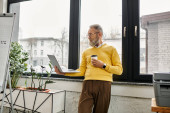 Zdjęcie "Handsome young man analyzes data and discusses reports while working in a sleek office setting." może być wykorzystywane do celów osobistych i komercyjnych zgodnie z warunkami zakupionej licencji Royalty-free. Obraz jest dostępny do pobrania w jakości wysokiej rozdzielczości do 5760x3840.