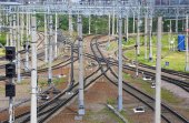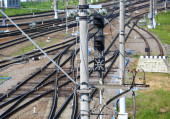 Kolej i komunikacja na dworcu kolejowym. Wysokiej jakości zdjęcie