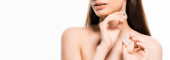 Młoda kobieta z zespołem Waardenburga podkreśla jej wspaniałe czerwone usta i niepowtarzalny wygląd, baner