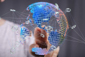 Zdjęcie "Global Network Connection: Mapa świata cyfrowego" może być wykorzystywane do celów osobistych i komercyjnych zgodnie z warunkami zakupionej licencji Royalty-free. Obraz jest dostępny do pobrania w jakości wysokiej rozdzielczości do 5760x3840.