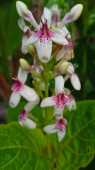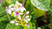 japoński kwiat jaśminu (Pseuderanthemum Reticulatum) kwitną z białym płatkiem. japoński kwiat jaśminu rośnie w ogrodzie. japoński jaśmin znany również jako Carruthers Falseface flower