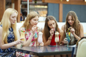 Zdjęcie "Grupa młodych kobiet siedzi przy stole jedzenia deser" może być wykorzystywane do celów osobistych i komercyjnych zgodnie z warunkami zakupionej licencji Royalty-free. Obraz jest dostępny do pobrania w jakości wysokiej rozdzielczości do 5760x3840.