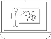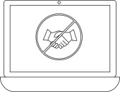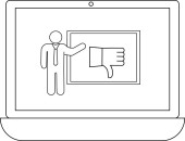 Laptop wyświetla smartfona z ikoną opuszczone kciuki w bańce mowy, sugerując negatywne sprzężenie zwrotne lub dezaprobatę urządzenia.