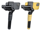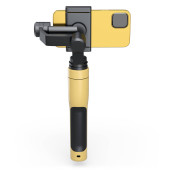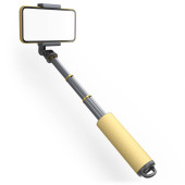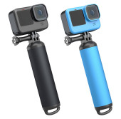 Fotografia i wideo lekka czarna kamera akcji z selfie kijem na białym tle. 3D renderowanie profesjonalnego sprzętu fotograficznego dla sportowców i podróży