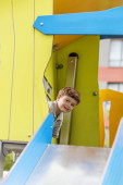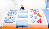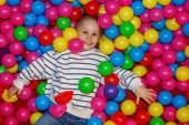 Zdjęcie "Uśmiechnięta dziewczyna lubi zjazdy w dół na jasnoróżowym nadmuchiwanym pierścieniu w bezpiecznym i kolorowym krytym placu zabaw przygoda." może być wykorzystywane do celów osobistych i komercyjnych zgodnie z warunkami zakupionej licencji Royalty-free. Obraz jest dostępny do pobrania w jakości wysokiej rozdzielczości do 5760x3840.