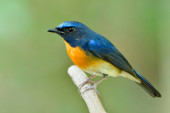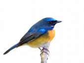 Zdjęcie "piękny niebieski i pomarańczowy ptak siedzący na gałęzi, Mężczyzna Niebieski-fronted redstart, Fenicurus frontalis, izolowany na białym tle" może być wykorzystywane do celów osobistych i komercyjnych zgodnie z warunkami zakupionej licencji Royalty-free. Obraz jest dostępny do pobrania w jakości wysokiej rozdzielczości do 5760x3840.