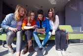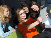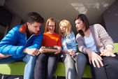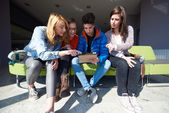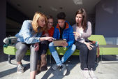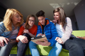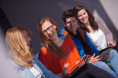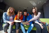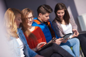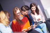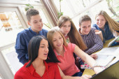 grupa uczniów pracująca razem nad projektem szkolnym