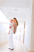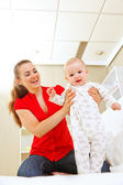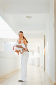 dziecięcej lekarz trzymając dziecko i rozmowy z matką