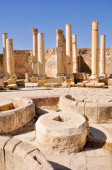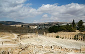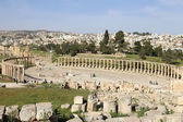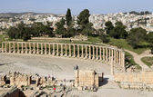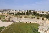 Panoramiczny widok na Plaza owalne w Jerash ruiny (Jordan)
