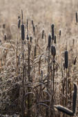 Zdjęcie "Fotografia z suchych trzcin, Typha Latifolia, zwany również bulrush, trzciny, cattail lub trawy corn dog, na brzegu zamarzniętego jeziora, czas zimowy" może być wykorzystywane do celów osobistych i komercyjnych zgodnie z warunkami zakupionej licencji Royalty-free. Obraz jest dostępny do pobrania w jakości wysokiej rozdzielczości do 5760x3840.