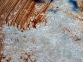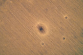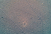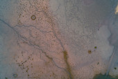 Nierównomierna pokrywa śnieżna na ciemnej ziemi tworzy dramatyczny kontrast pomiędzy białym lodem a brązową ziemią. Ta naturalna abstrakcja służy jako metafora zmieniających się pór roku lub skutków globalnego ocieplenia..