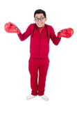 Zabawny sportowiec odizolowany na białym