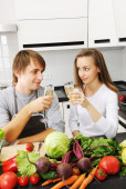 piękna para romantyczny w modne korzystających goodtime w kuchni