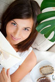 portret uśmiechający się piękna młoda brunetka kobieta w domu walaj