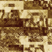Streszczenie pikseli sztuki cyfrowej z niebieskim, teksturowanym tłem i brązowymi geometrycznymi wzorami usterek. Artystyczny efekt sortowania pikseli z klasycznym ziarnem folii. Estetyczne lo-fi pikselowane tło cyfrowe.