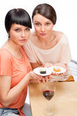 zbliżenie portret atrakcyjna młoda para jedzenia owoców sala