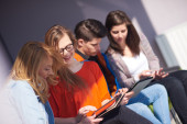 Zdjęcie "Grupa studentów pracujących nad projektem szkoły" może być wykorzystywane do celów osobistych i komercyjnych zgodnie z warunkami zakupionej licencji Royalty-free. Obraz jest dostępny do pobrania w jakości wysokiej rozdzielczości do 5760x3840.