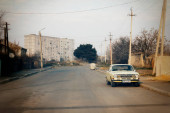 Autentyczna architektura sowiecka - Stary budynek teatralny ze starą fasadą