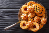 Fresh Yorkshire puddings in baking dish macro. horizontal top vi