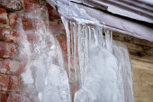 Zdjęcie "Oszałamiające sople zwisające z pokrytego śniegiem dachu na tle przejrzystego błękitnego nieba. Zimowa scena natury z długimi przezroczystymi formacjami lodu na okapie budynku w jasnym świetle słonecznym." może być wykorzystywane do celów osobistych i komercyjnych zgodnie z warunkami zakupionej licencji Royalty-free. Obraz jest dostępny do pobrania w jakości wysokiej rozdzielczości do 5760x3840.