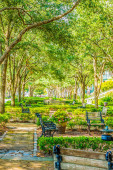 Zdjęcie "Ławki w parku Forsyth" może być wykorzystywane do celów osobistych i komercyjnych zgodnie z warunkami zakupionej licencji Royalty-free. Obraz jest dostępny do pobrania w jakości wysokiej rozdzielczości do 5760x3840.