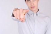 Mężczyzna biznesmen dotknąć palcem Szukaj w Internecie nieznany