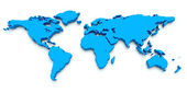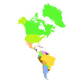 3D kolor mapa Południowej i krajów Ameryki Północnej