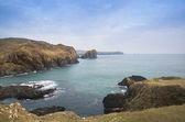 Wspaniałe wschód krajobraz obrazu z Land's End w Kornwalii Engla
