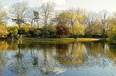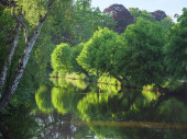 pejzaż staw z wierzby wiosną, Północna Nadrenia Westfalia, Niemcy