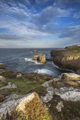Wspaniałe wschód krajobraz obrazu z Land's End w Kornwalii Engla