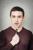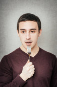 portret czarujący mężczyzna jedzenie rosyjski tradycyjny posiłek przy użyciu wideł