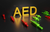 przycisk symbol waluty aed kurs koncepcja na białym tle
