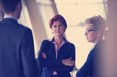 działalności osób Grupa, kobieta z przodu jako lider zespołu