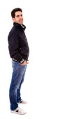 uśmiechający się przystojny mężczyzna młody na białym tle